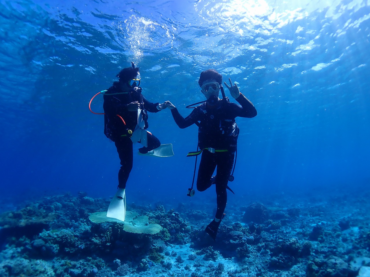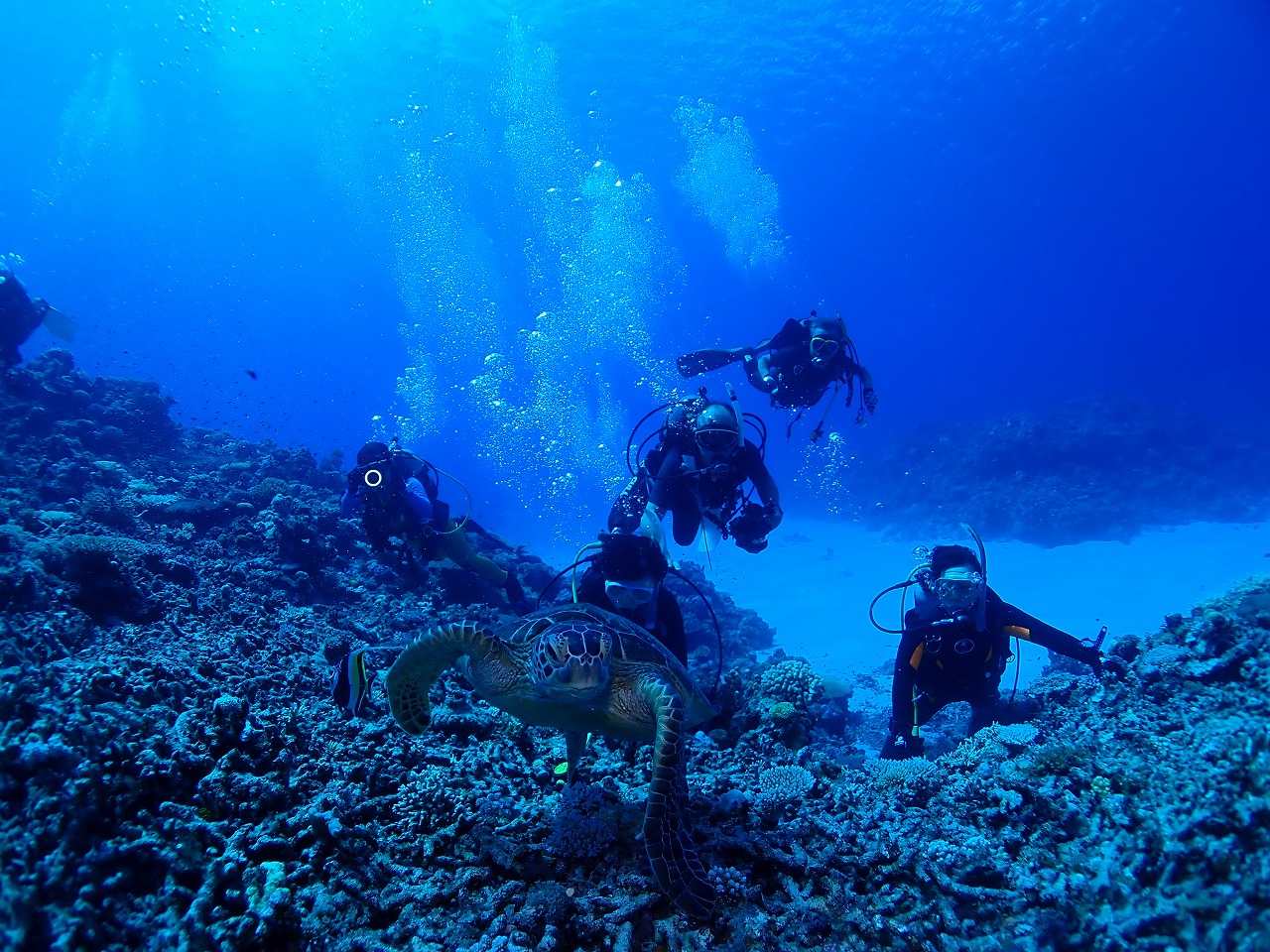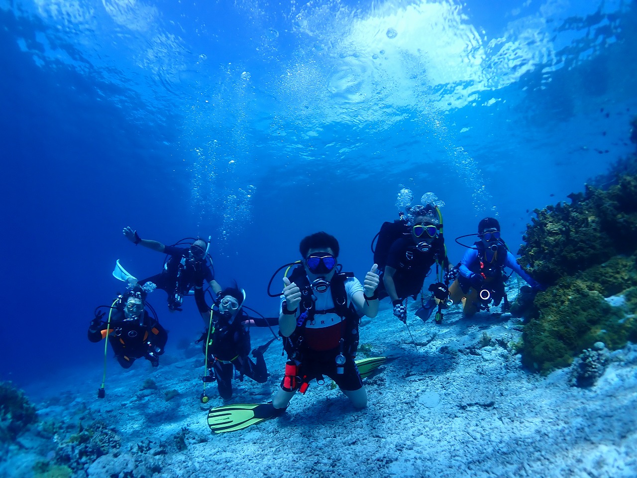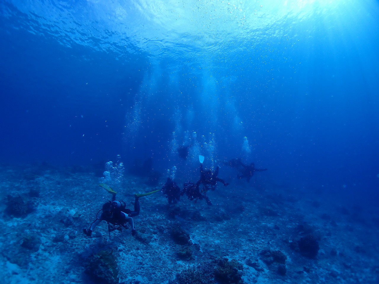 チームが一つになり、椿さんと一緒に9名様とダイビング。