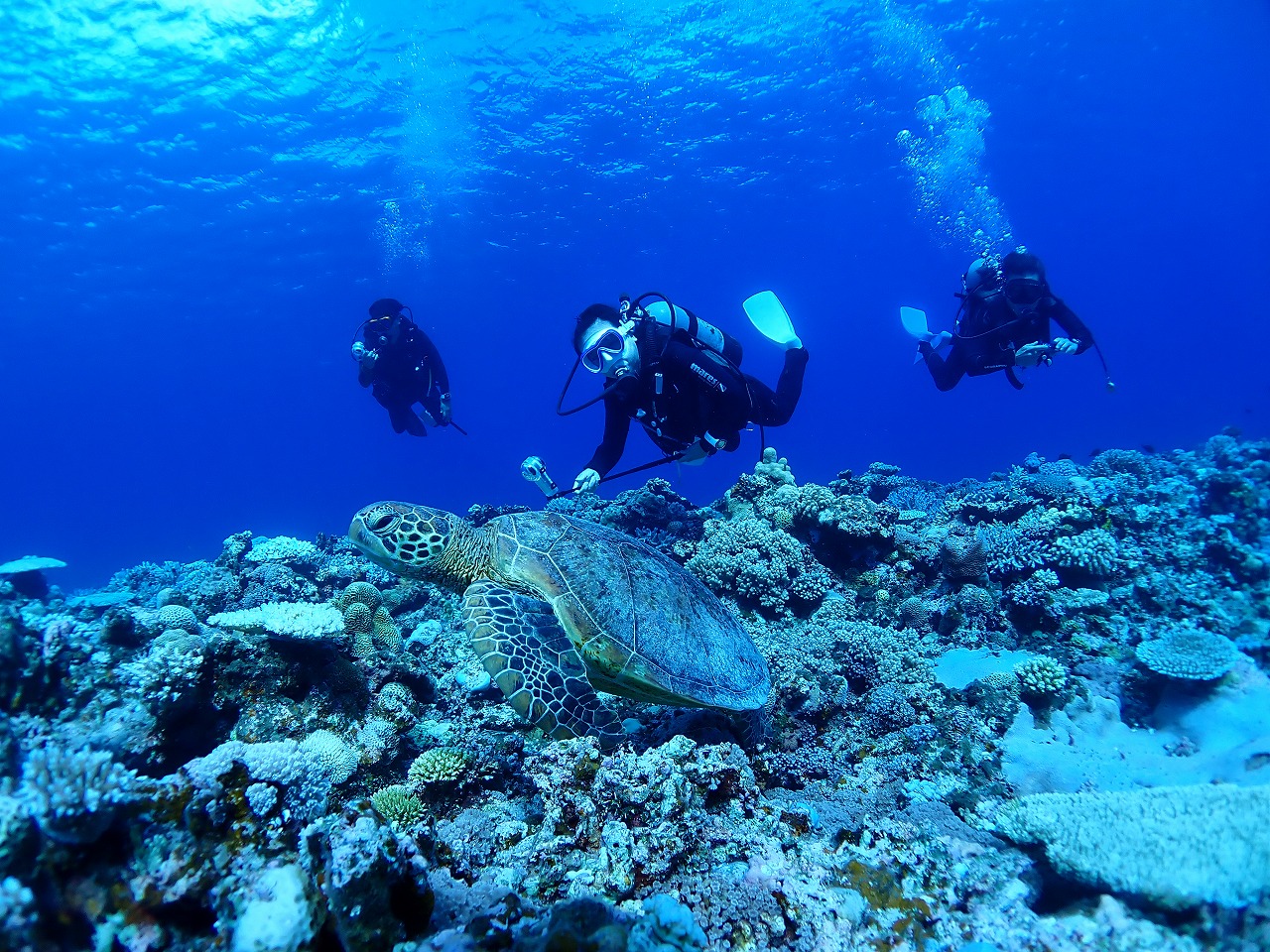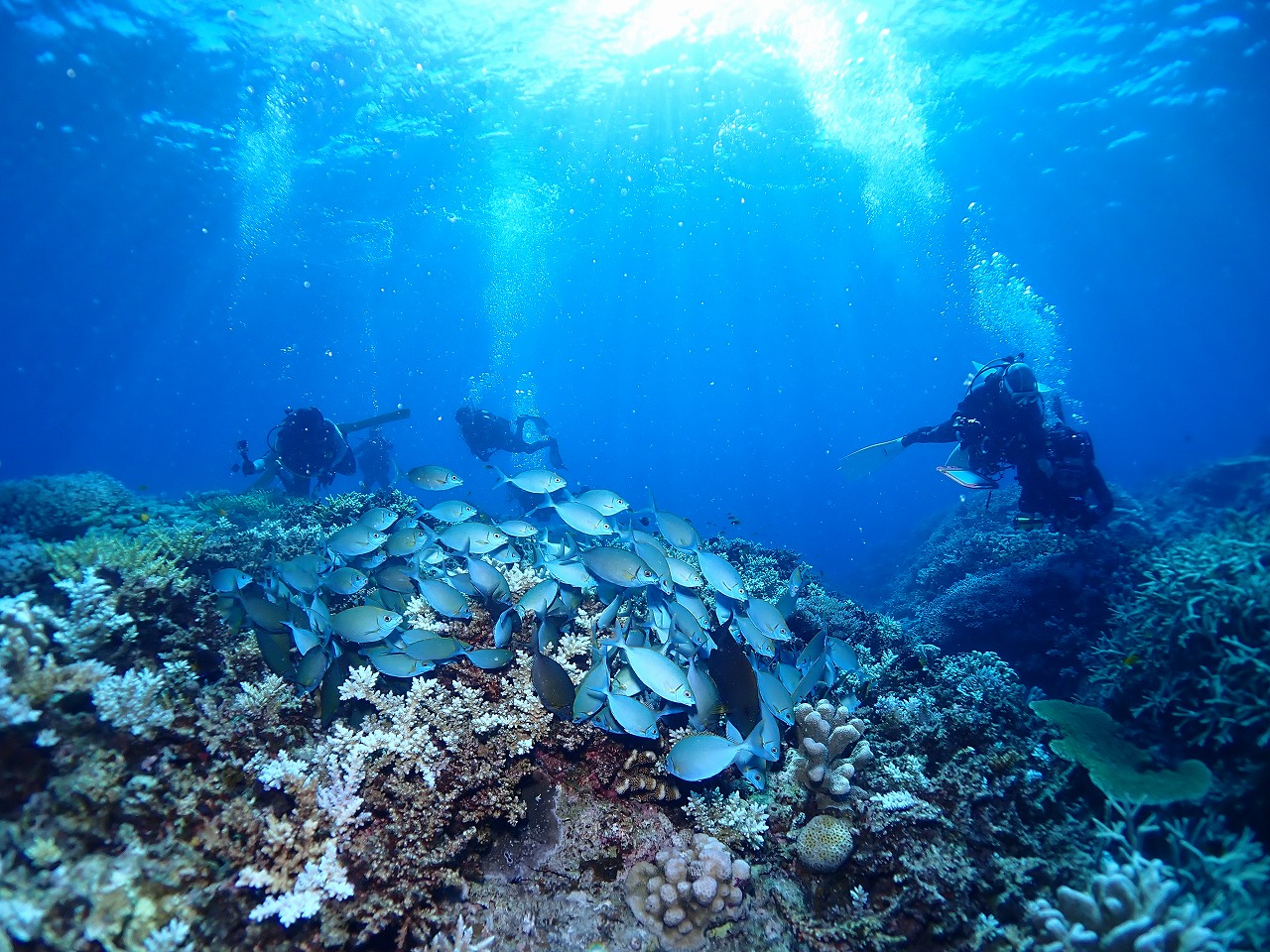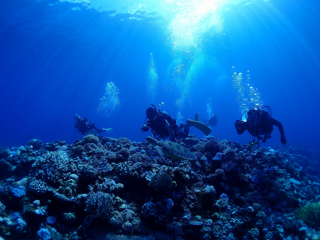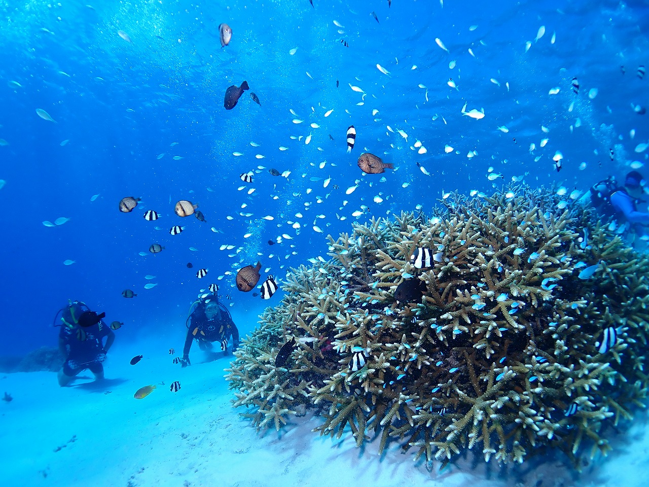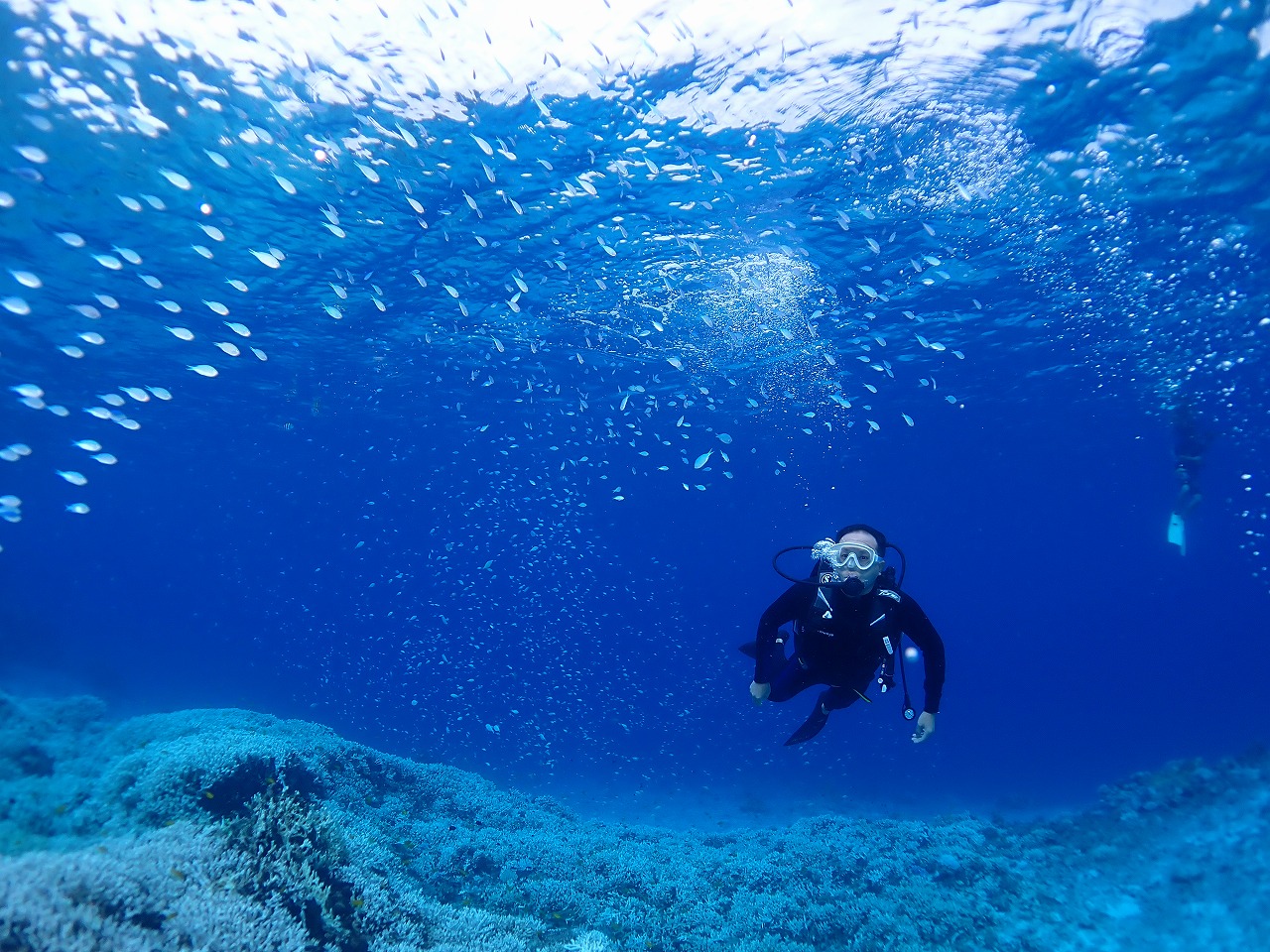 チームが一つになり、椿さんと一緒に9名様とダイビング。