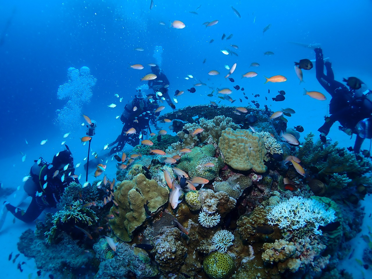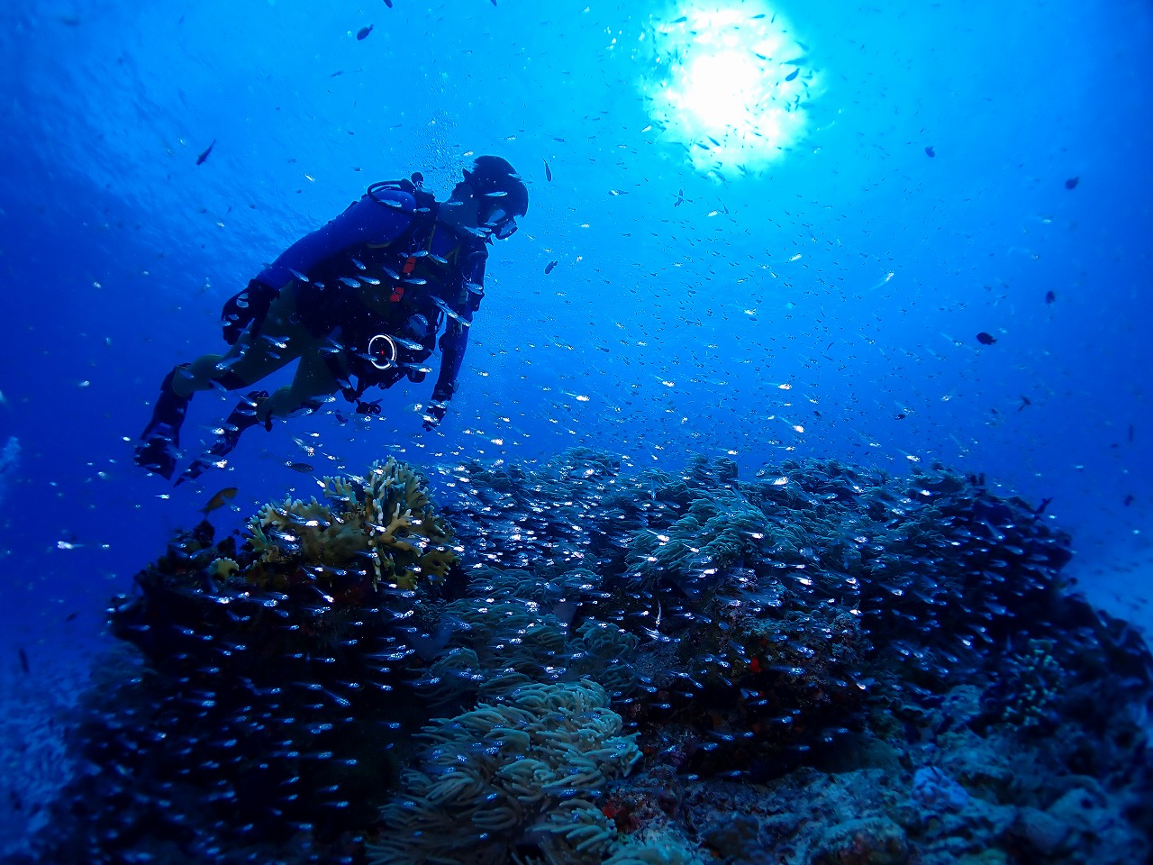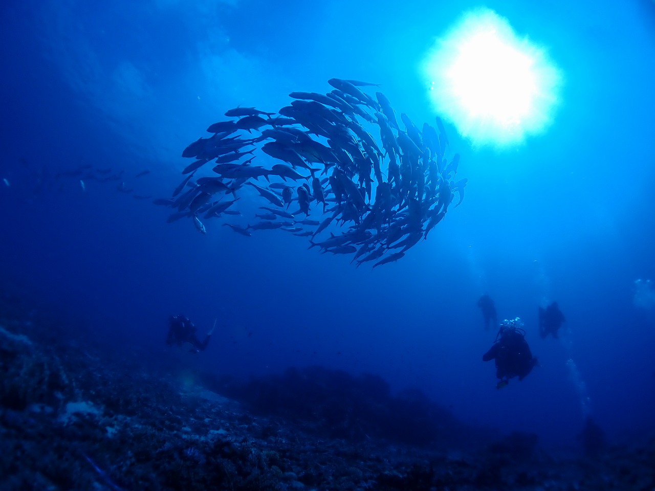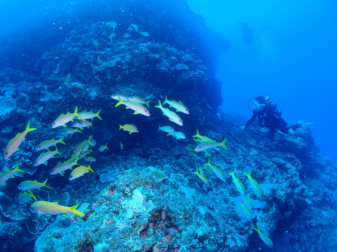 チームが一つになり、椿さんと一緒に9名様とダイビング。