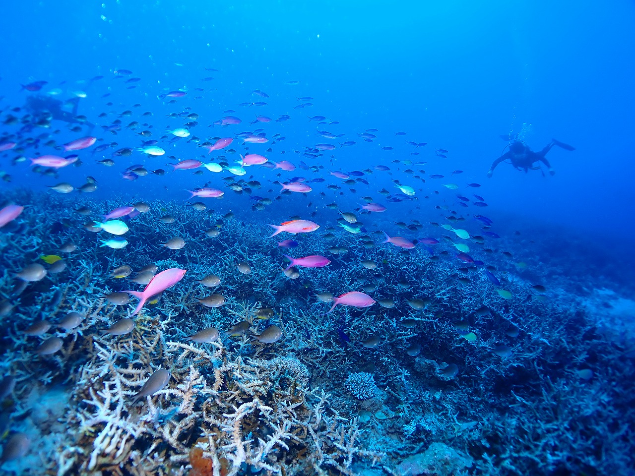 2組3名様とダイビング。ハナゴイとデバスズメダイが色鮮やか。