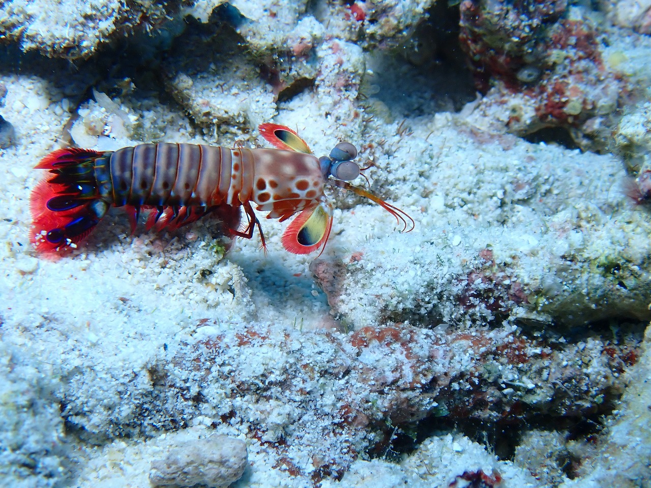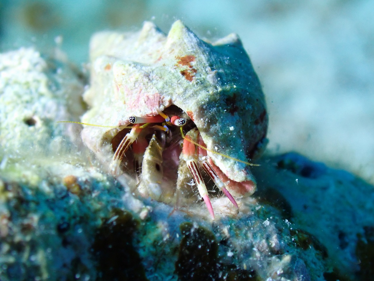 こちらはお目目キラキラのカザリサンゴヤドカリ。
