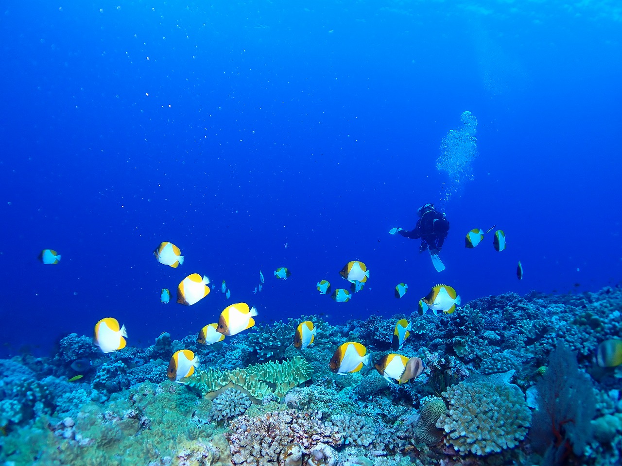 カスミチョウチョウウオが近くまで来てくれてキレイでした。