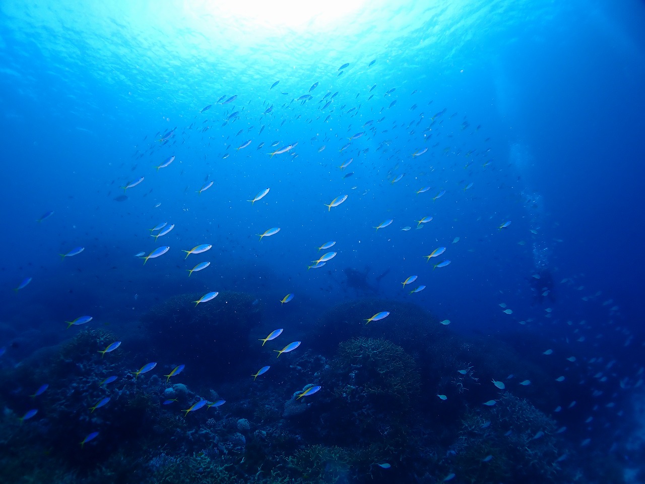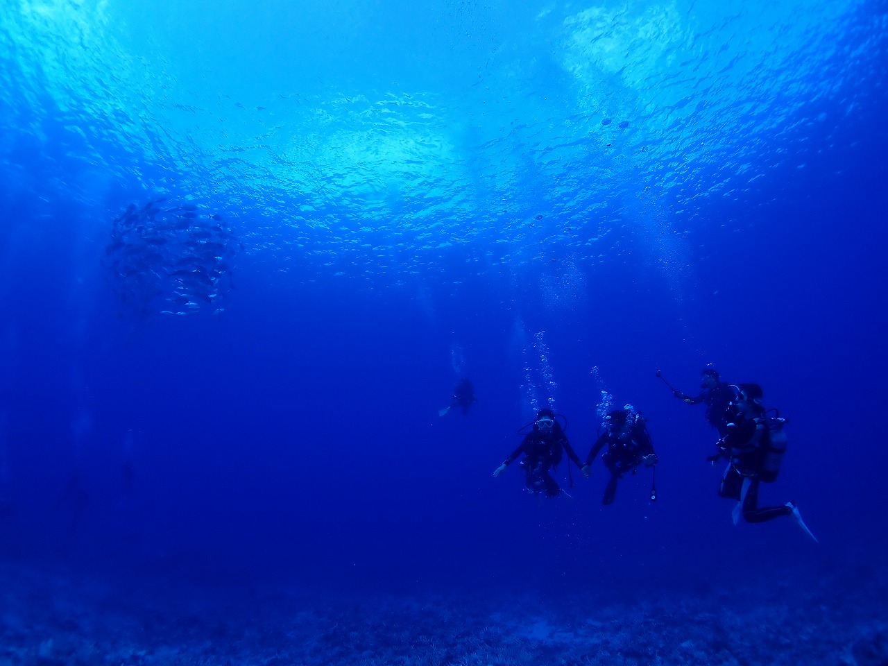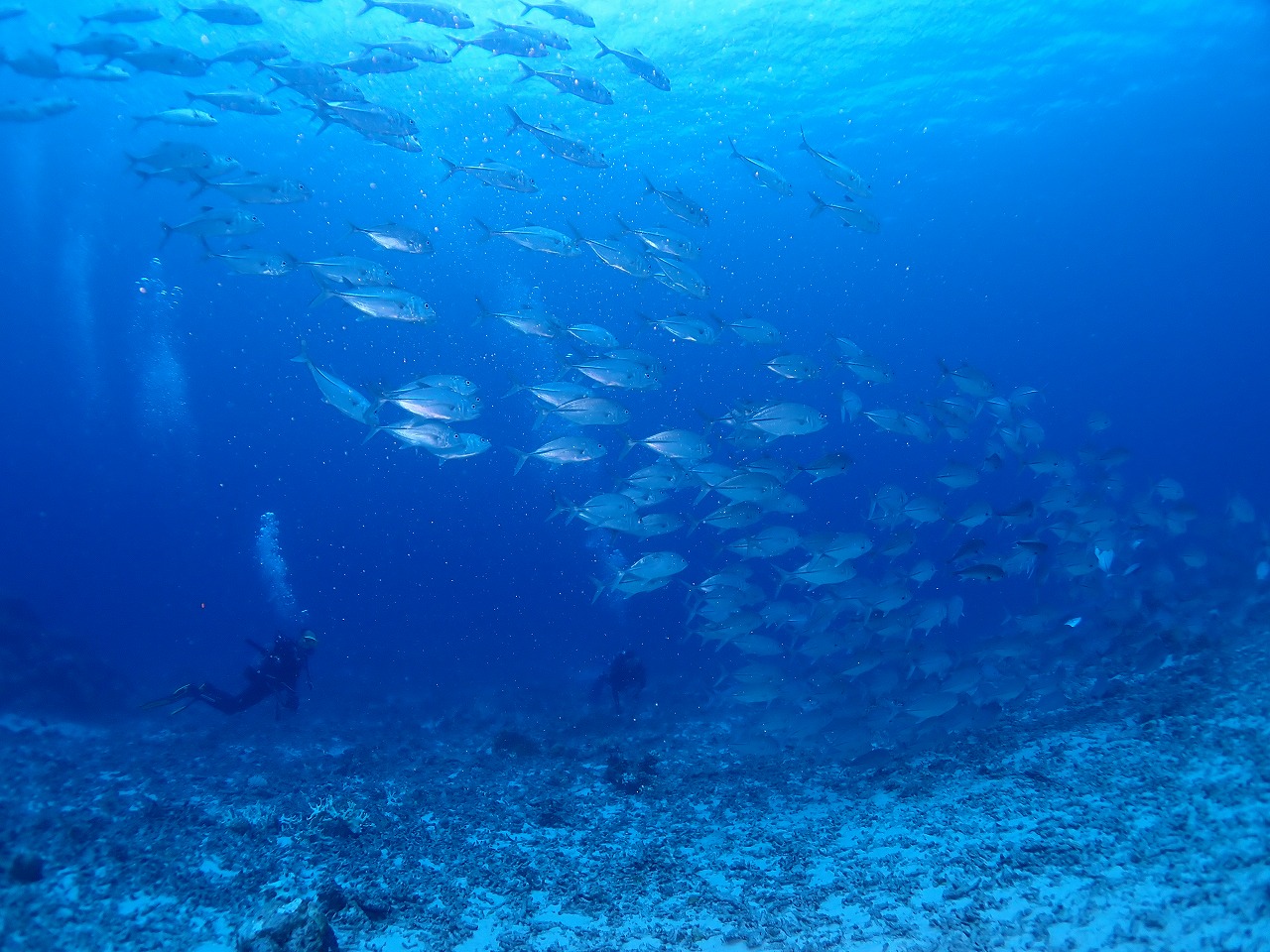 最大7名様とダイビング。ギンガメアジがぐるぐる。水がいいですね。