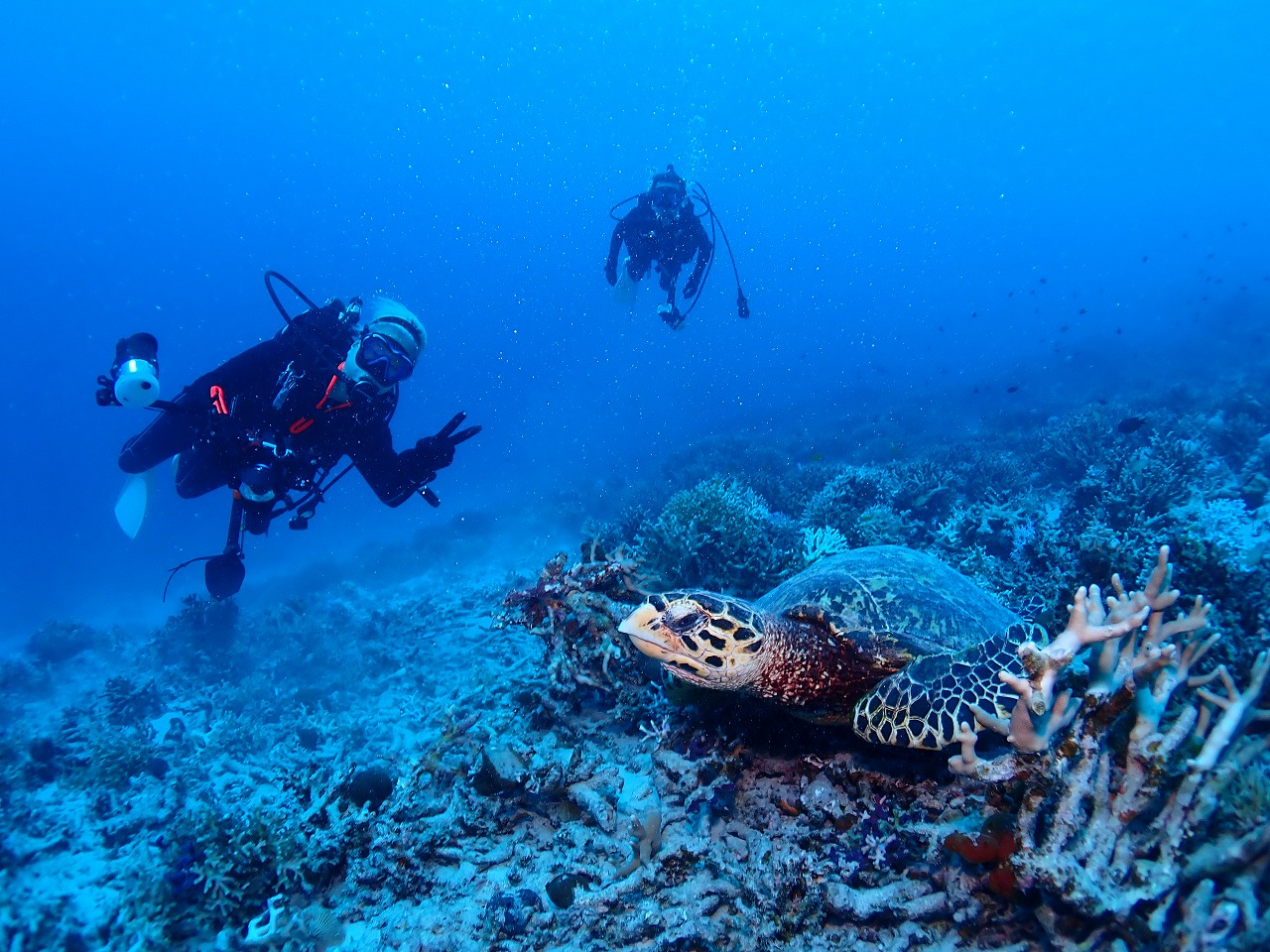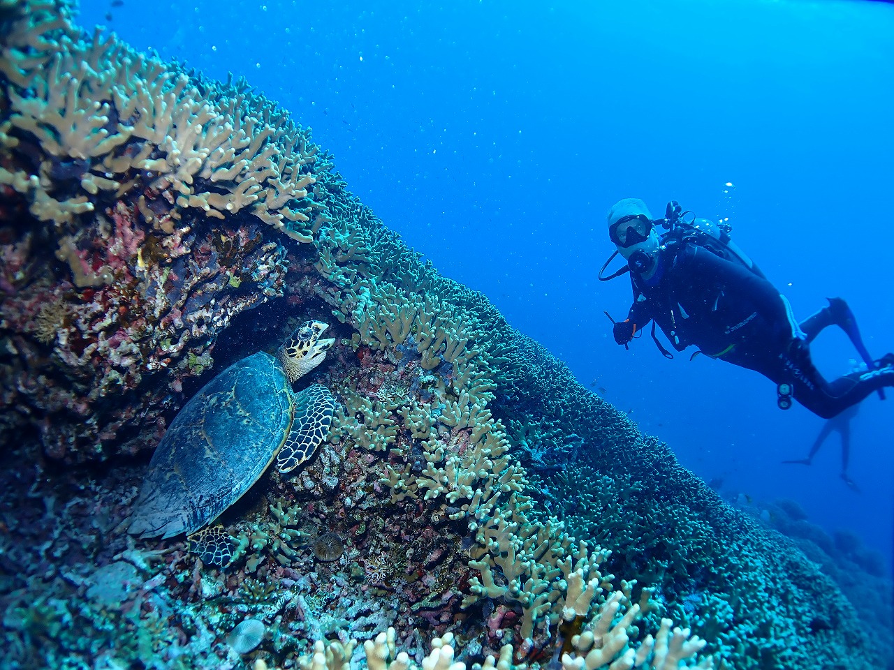 少しウネリがある中で行ったカメポイントではアオウミガメが優雅に泳いでいました。
