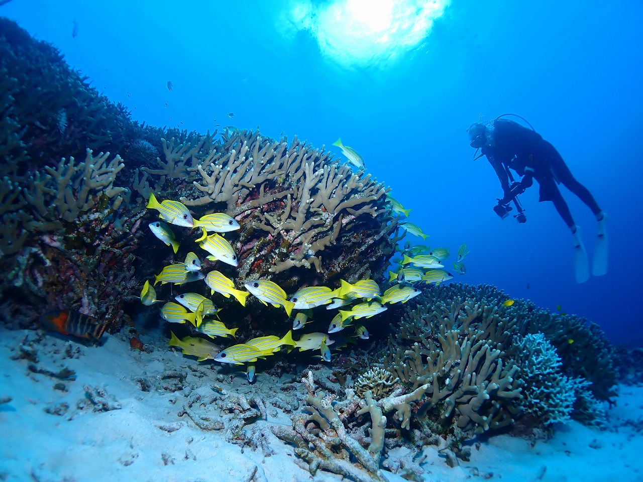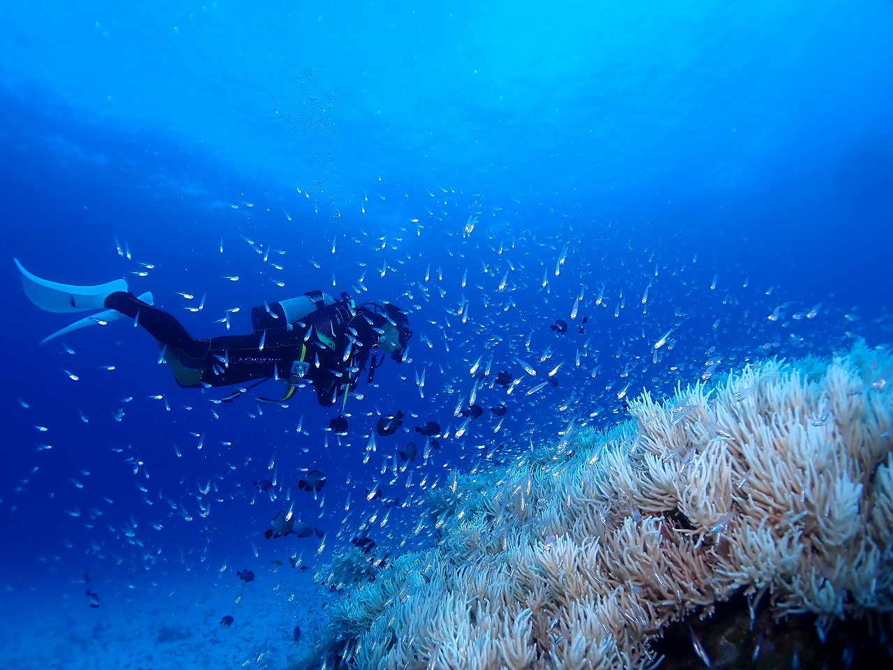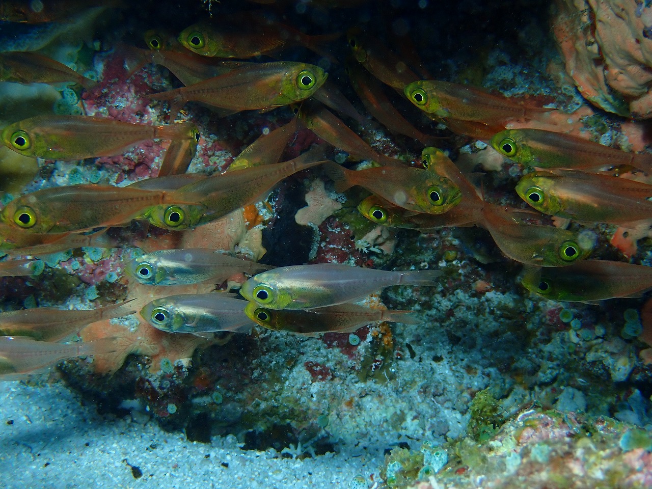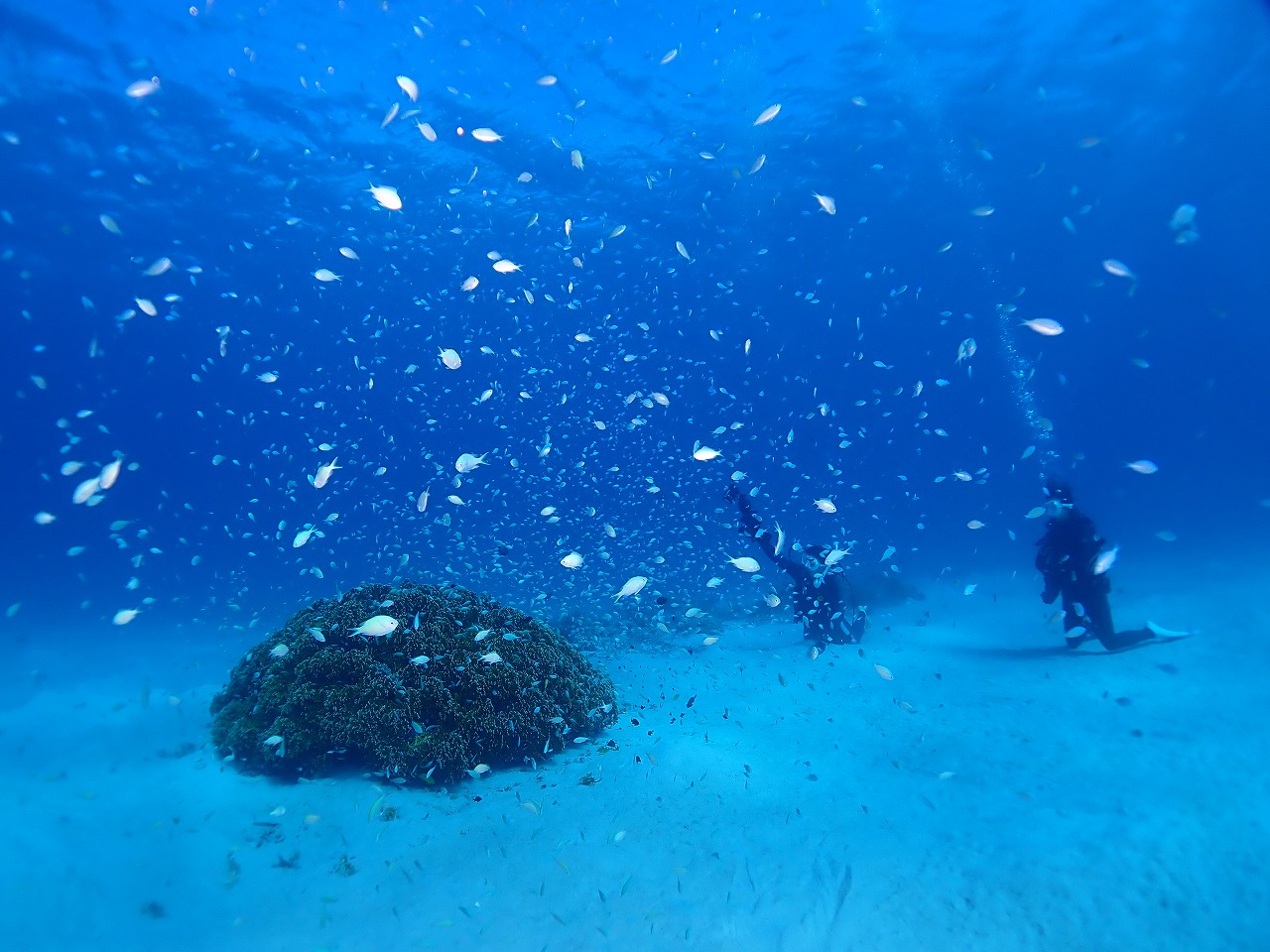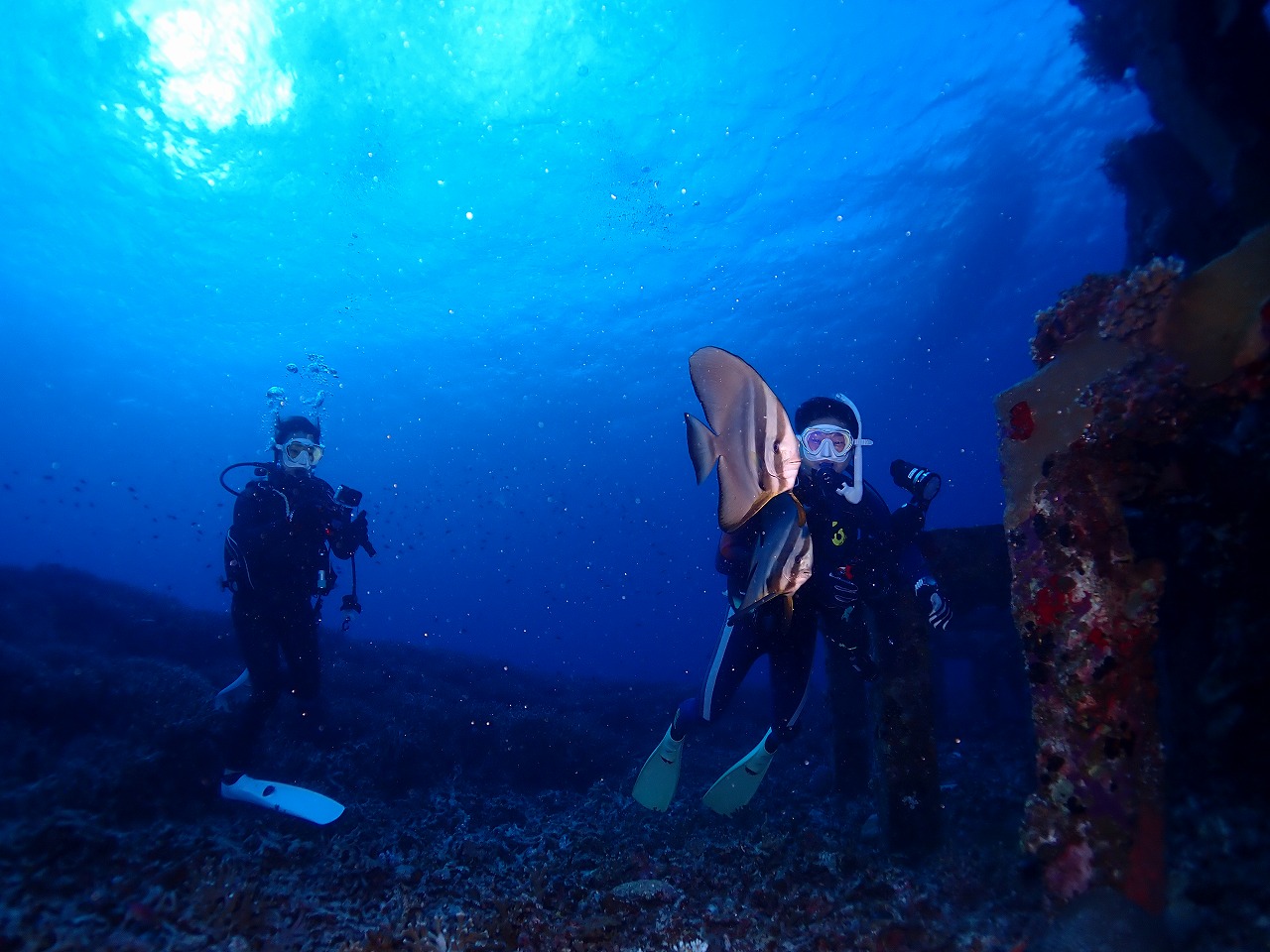 午後は4名様とダイビング。ウケグチイットウダイがギラギラです。