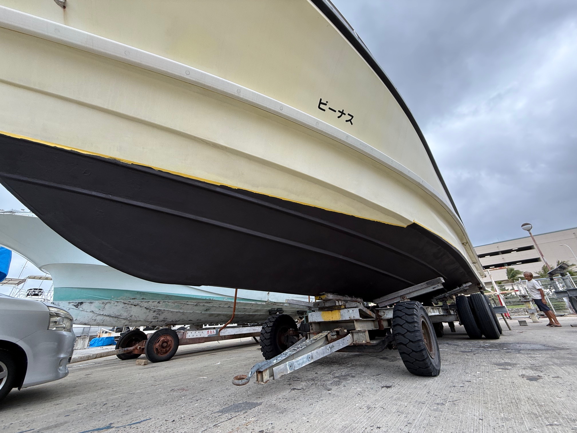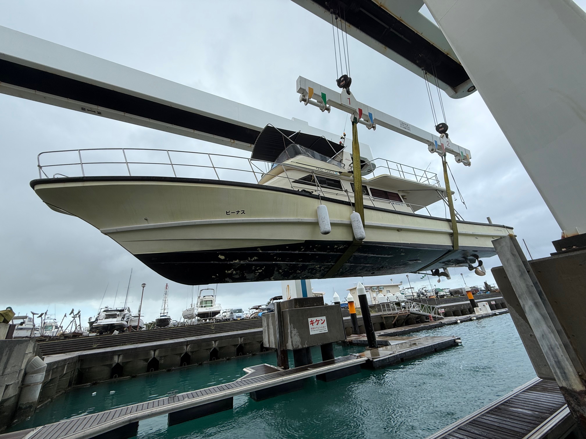 ビーナスさんを宜野湾へお連れしての上架作業です。