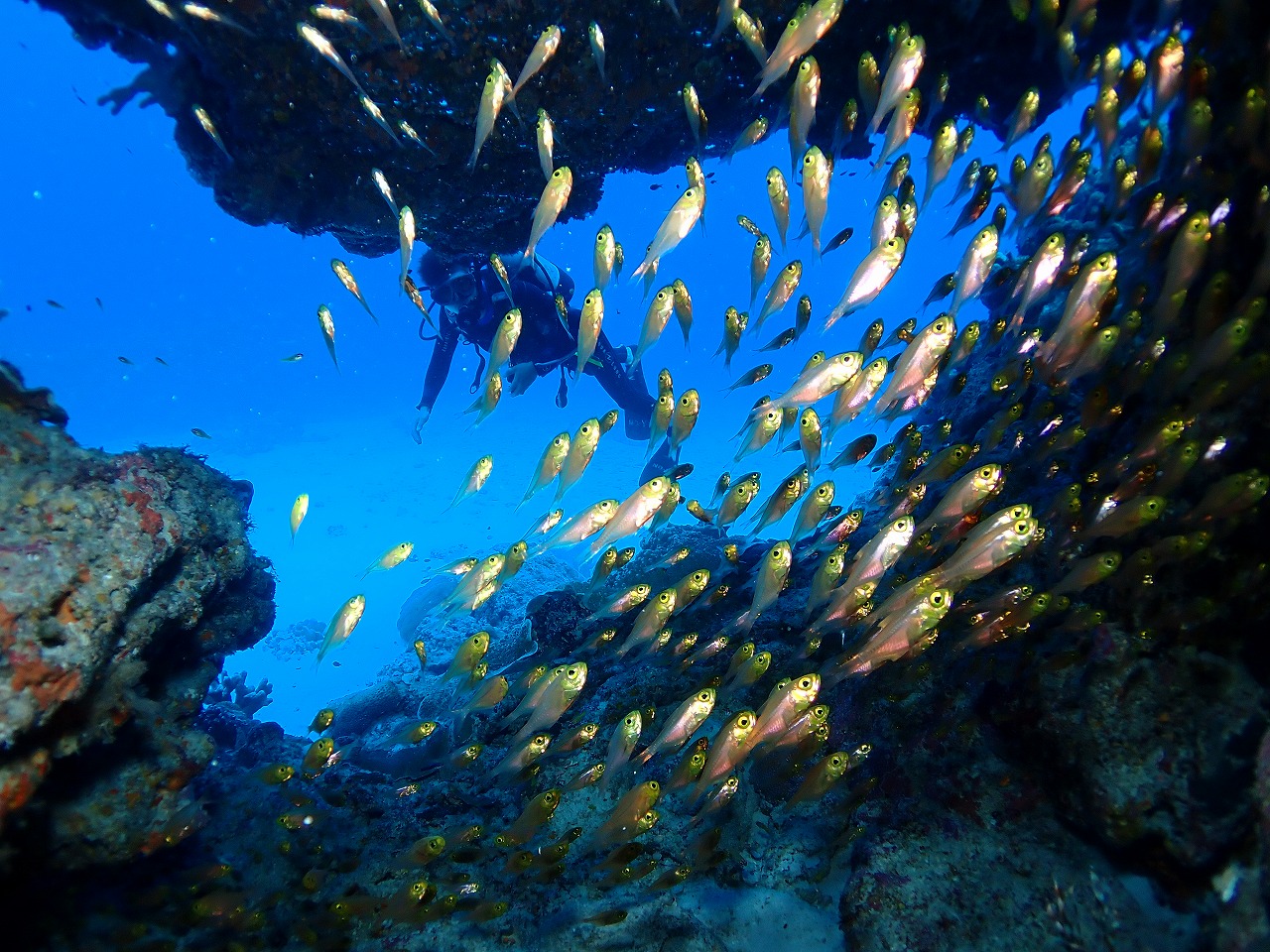 水温は25度前後くらい。例年の12月初頭よりは大分暖かいですが、寒がりの人は水中・船上共にシンドいかも。
