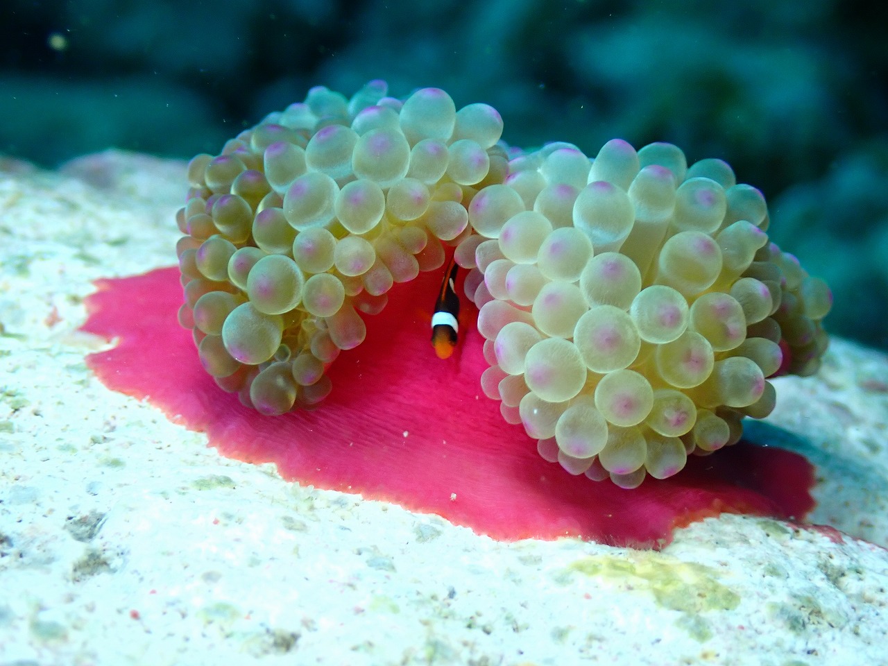 ちびイソギンチャクとハマクマノミ幼魚