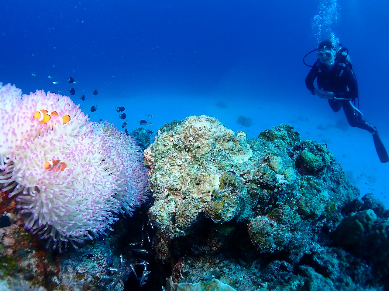 午後は奥様とダイビング。ここのカクレのイソギンチャクきれいだったなー