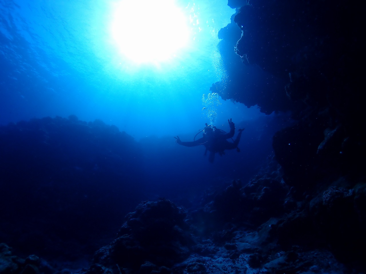 お子様がいらっしゃるので夫婦交代で一名ずつのダイビング。