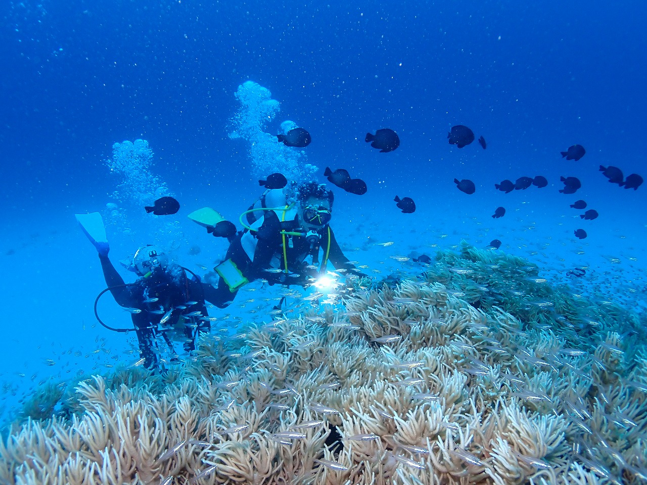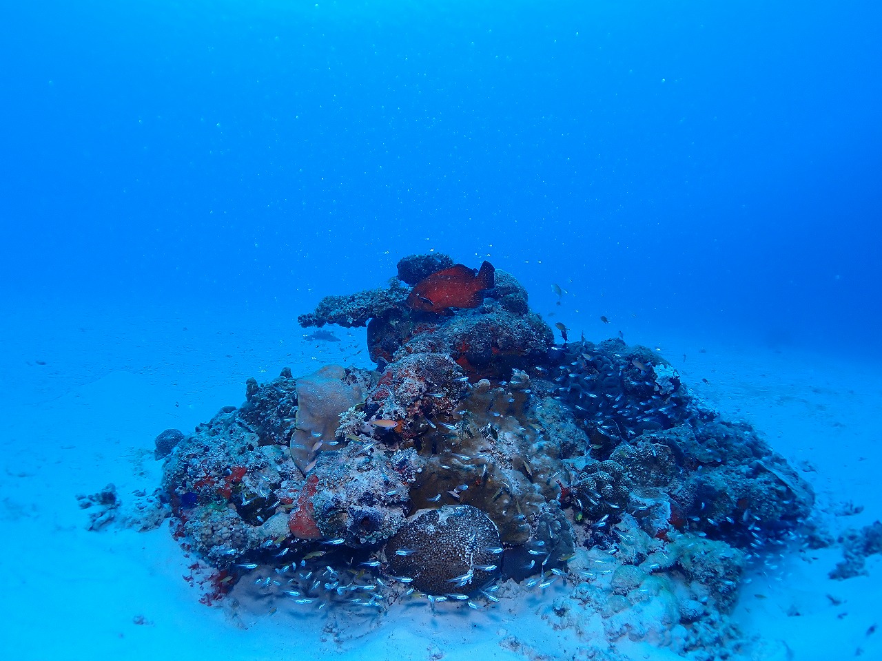 空が少し暗めな事もあってか、デバスズメダイはテンション低めだったかも?
