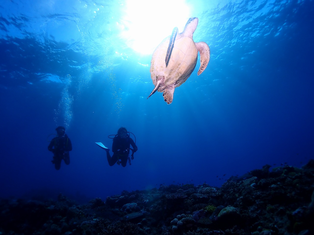 アオウミガメも太陽に照らされてキレイでした♪